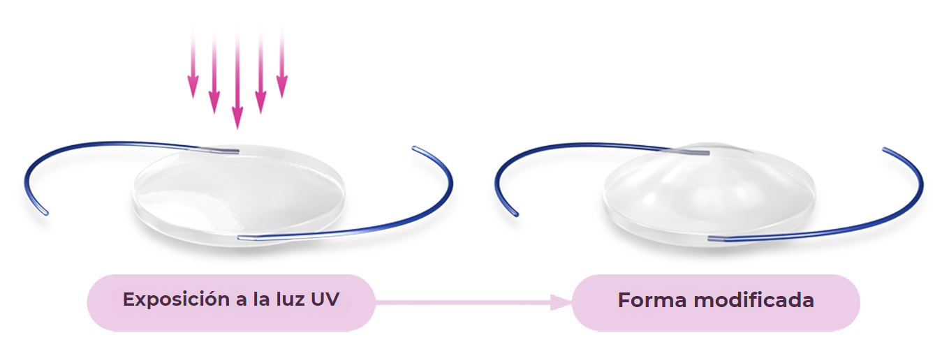 La Light Adjustable Lens está fabricada con un material fotosensible especial que cambia delicadamente de forma cuando se expone a la luz ultravioleta (UV). Una vez que el ojo se ha recuperado de la cirugía, el oftalmólogo utiliza el novedoso dispositivo Light Delivery Device™ (LDD™) para ajustar con precisión la lente en función de su resultado visual deseado. Cada tratamiento dura solo unos minutos y utiliza luz UV para remodelar la lente y ajustar la graduación a su resultado visual deseado.